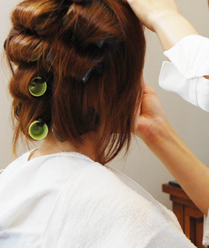モデルさんヘアメイク中